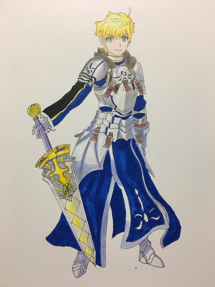 fgoのペンドラゴンプロトタイプ描いてみました!初めて男性の絵を模写した!まあまあだけど、体のバランスが良くないよう泣 #fgo #アーサーペンドラゴン #イラスト #芸術同盟 #絵描きさんと繋がりたい