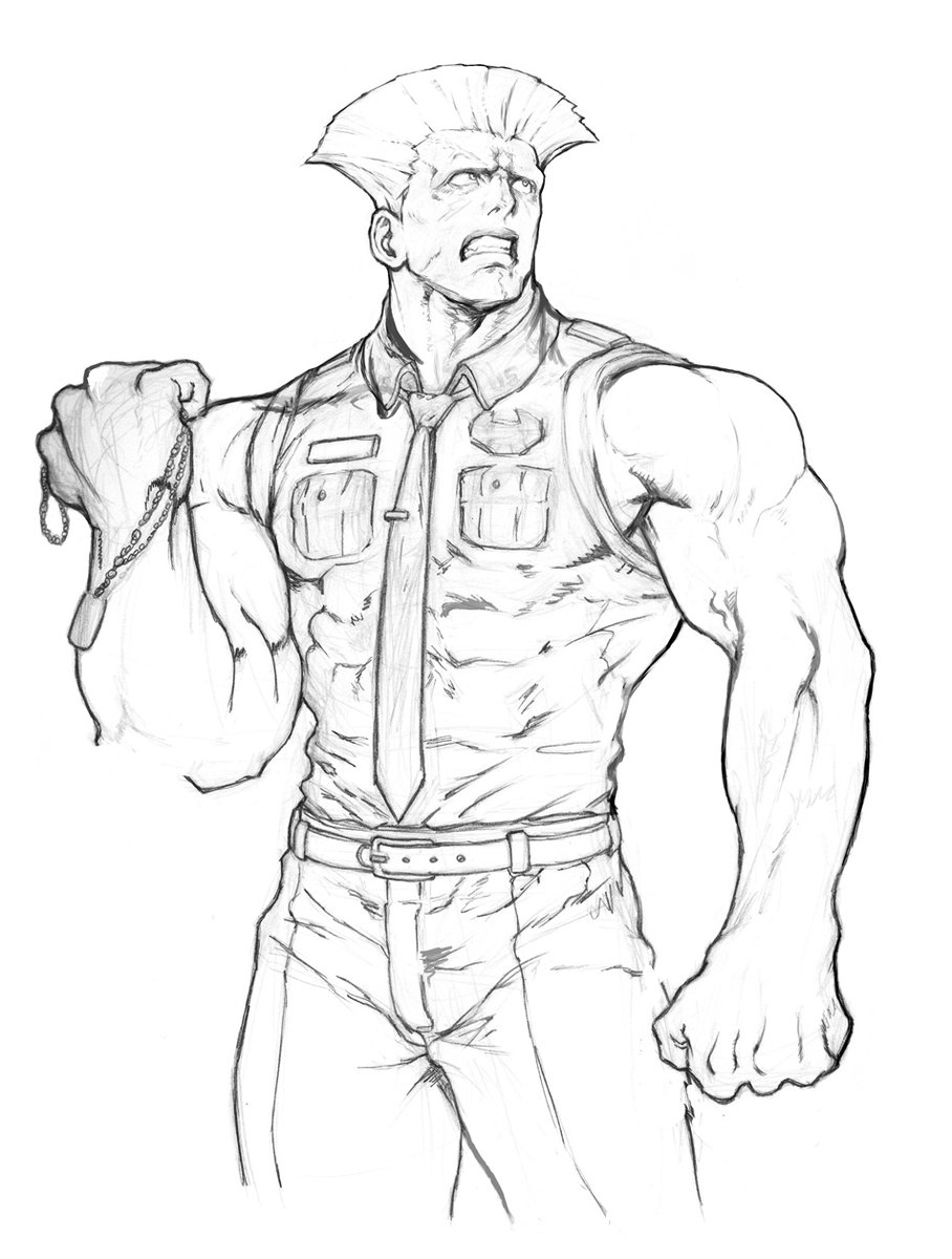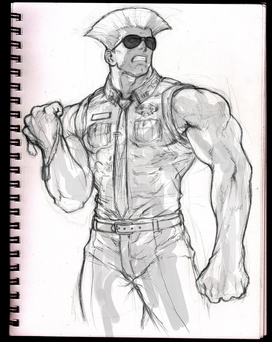 42 354 *After Kinu Nishimura.* I redrew some of Kinu's CVS2 work in SF5 redesign. I always loved SF5 Guile. Can't wait to do 6's 22/06/18 05:09