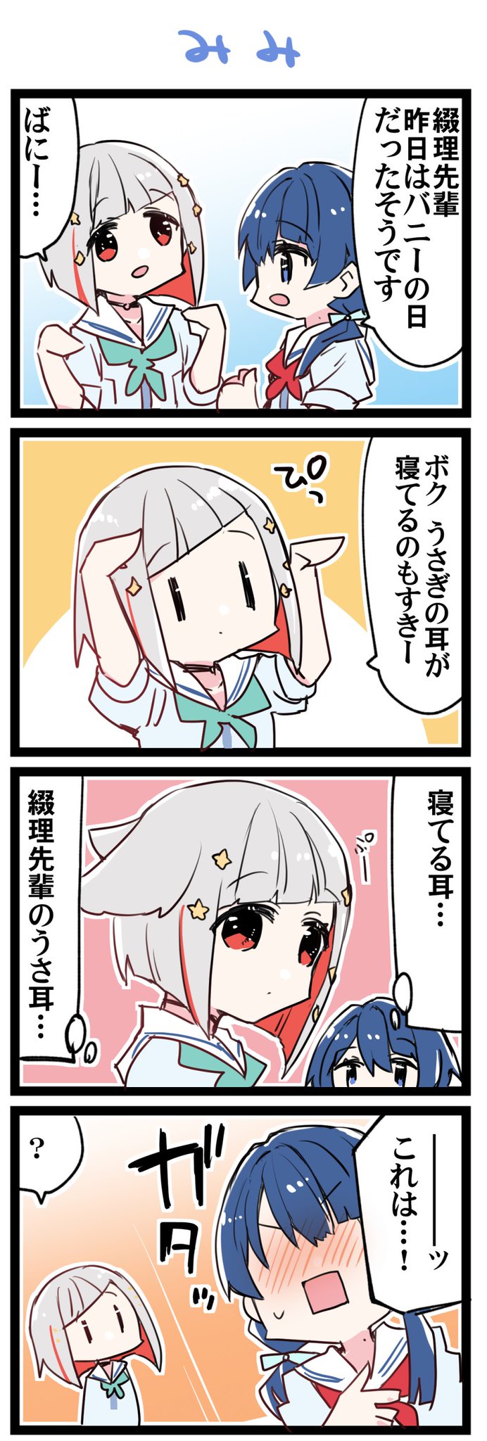 179 668 耳にもいろいろ 虹+サンシャイン+L+蓮 ほぼ日4コマ2300本目です。 蓮ノ空つづさや(夕霧綴理+村野さやか)#はすこま 23/08/22 08:00