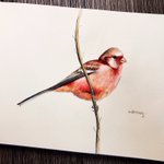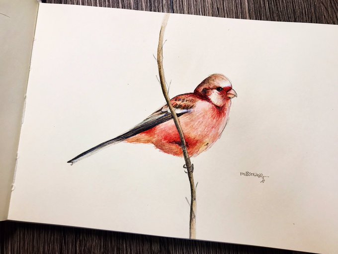 Uragus sibiricus ベニマシコ 同じ鳥、画材を変えて2回描く。 (絵描き川柳) どっちが好き? #watercolor #顔彩 #wildlife twitter.com/kanekoyoh/stat…