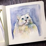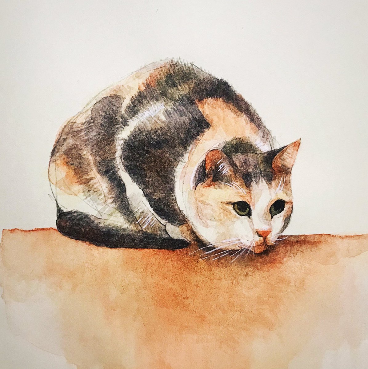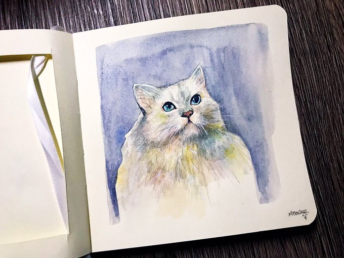 やっぱこう…見た感じの「わーそっくり描けてるね!」ってたいして重要ではないな。私は、匂いや体温、チクチクしたヒゲの硬さ、フローリングを歩くときに爪が当たるカチャカチャした足音、そういうのを思い起こさせるような絵が描きたいな。 Boa noite ☾︎.*·̩͙ みんなおやすみ😴 #watercolor