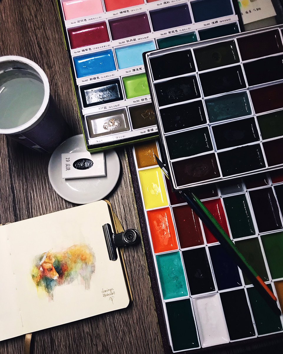 大きさや強さ。圧倒的な「何か」のことを考えているときは、不思議と心が落ち着く。自分が敵う相手じゃない何か。自分の「ちっぽけ感」を改めて理解するのは大切なことなのかもしれない。 圧倒的な何か。宇宙とか、海とか、マントルとか、ゾウとか。 #drawing #watercolor #水彩画