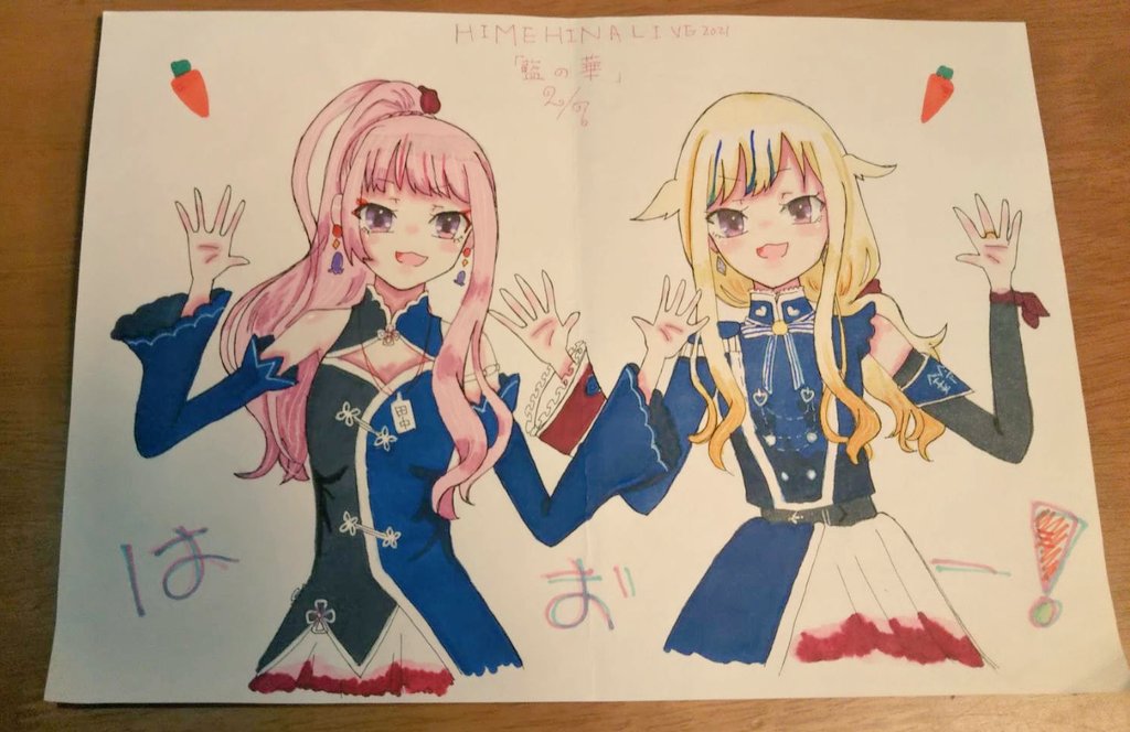 8 35 ヒメヒナ3周年おめでとう💗🥕💙🥕 ライブ後描いたやつデジタルにおこしました😌 誕生日が3月18日やから運命感じまくりのヒメヒナ😳 これから大好きだぁ🥕💗💗💙💙🥕 #ヒメヒナ3周年 #ヒメヒナアート 21/03/20 21:05