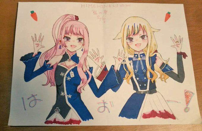 ライブ楽しかったー!の勢いで描いたやつやからちょっと衣装違うかもやけどそこは目つぶって欲しい🙏 改めてジョジ民で良かったなって。ヒメヒナが大好きだなぁって思えたそんなライブでした。ありがとう。🥕💗🥕💙 #ヒメヒナワンマンライブ #ヒメヒナアート
