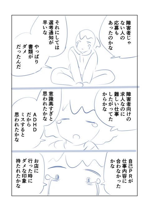 7 75 初めて障害者雇用の求人に応募して書類選考で落ちた時の話(3/8) #ADHD #障害者雇用 #エッセイ漫画 #漫画が読めるハッシュタグ 23/05/11 17:27