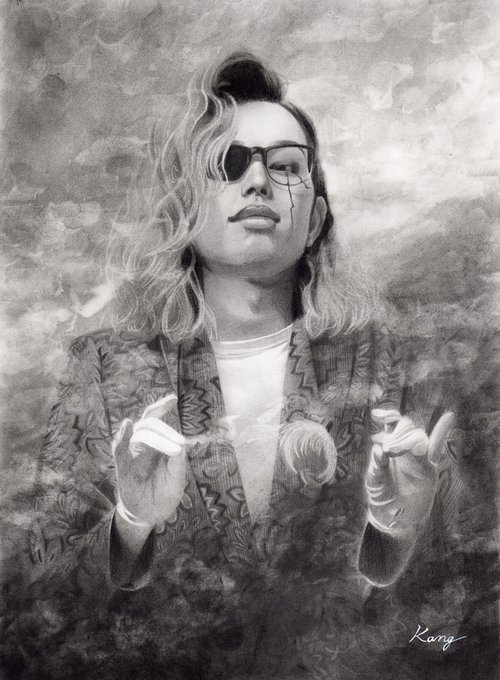 #2019年自分が選ぶ今年の4枚 大槻さんをモデルに鉛筆画に取り組んだ一年でした。これからも描いていきます🔥 #鉛筆画 #大槻ケンヂ #カンのオーケン画