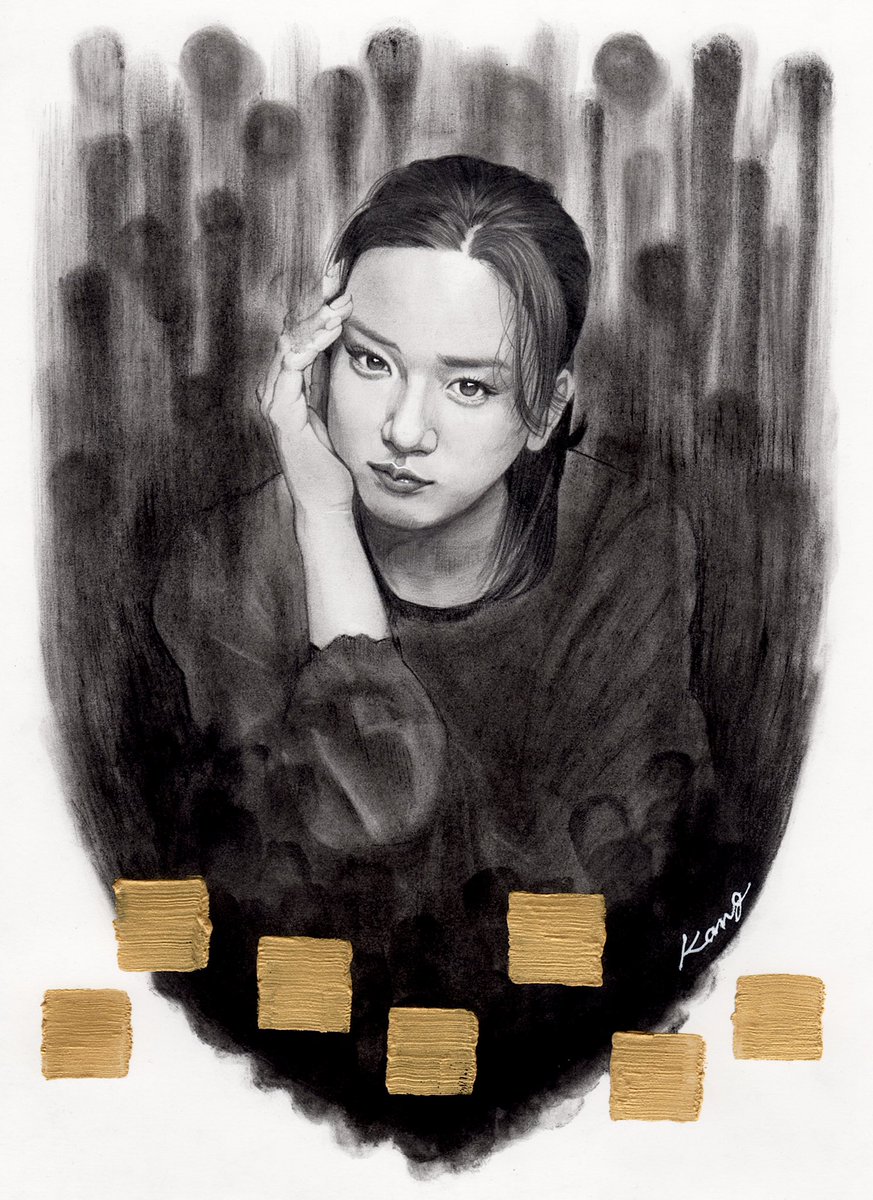 『暗黒のめいちゃん』 ケント紙+鉛筆+コンテ+水彩絵の具 #イラスト #アナログ #鉛筆画 #模写 #ポートレート #永野芽郁