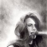 5 91 娘。my daughter. ケント紙+鉛筆+ペン+ホワイト #イラスト #アナログ #鉛筆画 #模写 #ポートレート 20/01/10 00:24