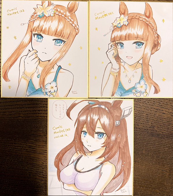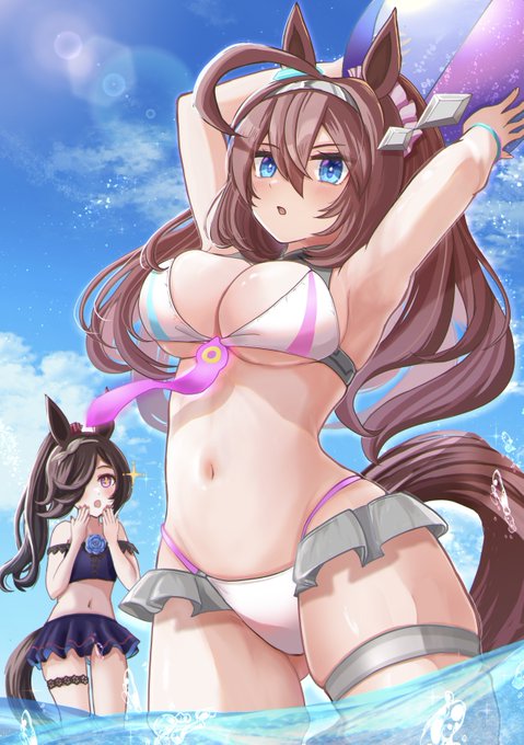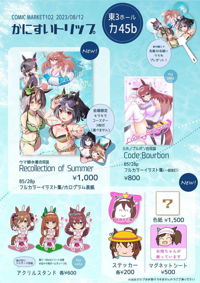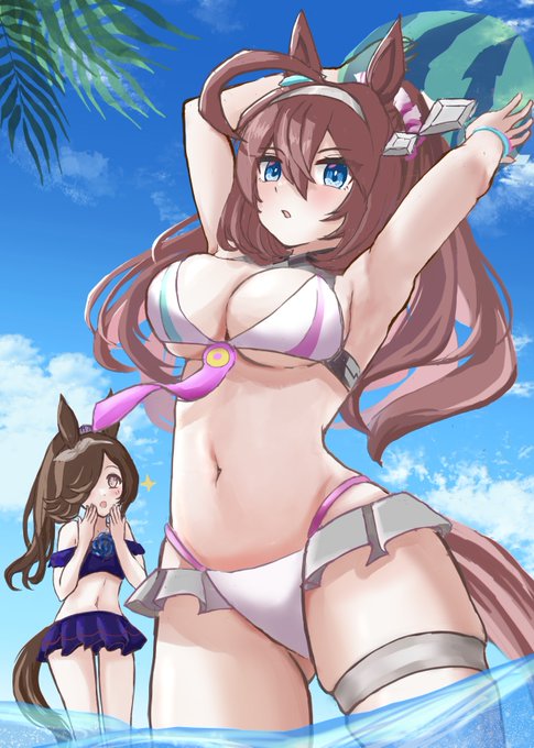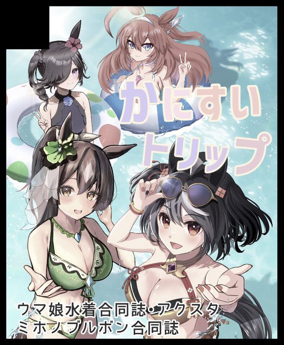 【C102新刊のお知らせ】 夏コミでウマ娘水着イラスト合同誌を頒布します!🏖#C102 新刊購入特典→表紙+全員描き下ろしを使用したキラキラ紙コースター(11種ランダム配布) なんと!会場限定で2枚つきます!! 通販ページにサンプルあります🙌 melonbooks.co.jp/detail/detail.… 参加者→→→