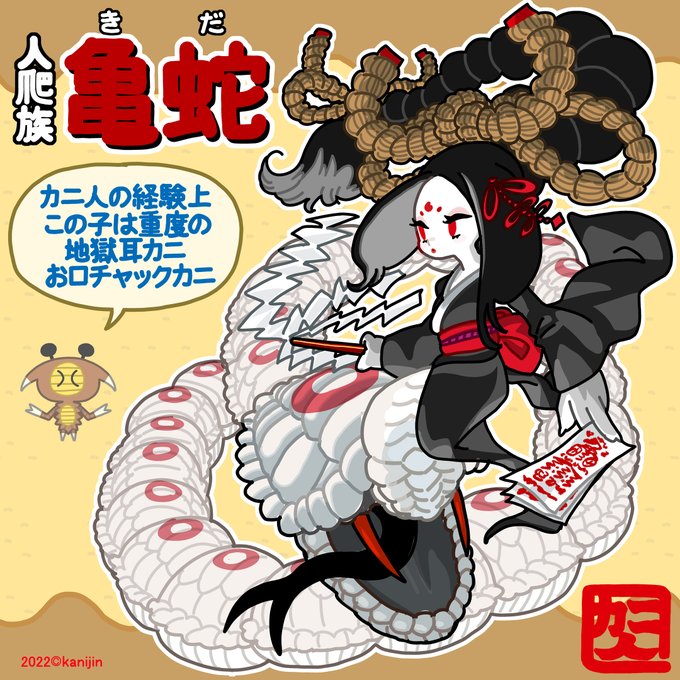 亀蛇人爬ちゃんは爬の国の住人だ。大昔アガルタ深部からこの地へ来て国の基礎を作ったとされている一族の末裔。個体数が極めて少ないが地上では繁栄しておりほとんどが神職だ。耳がとても良い。