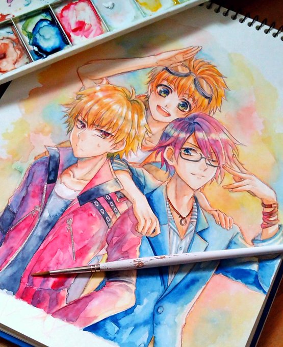 クリア記念に我慢ならんで初描き五月女光基くん〜! 見た目が好みだったので一番最初に攻略しました🙌 特典ドラマCDの梶原さんの演技がむちゃくちゃ好きです何度でも聴きたい…👼✨✨ #シンキス #SympathyKiss