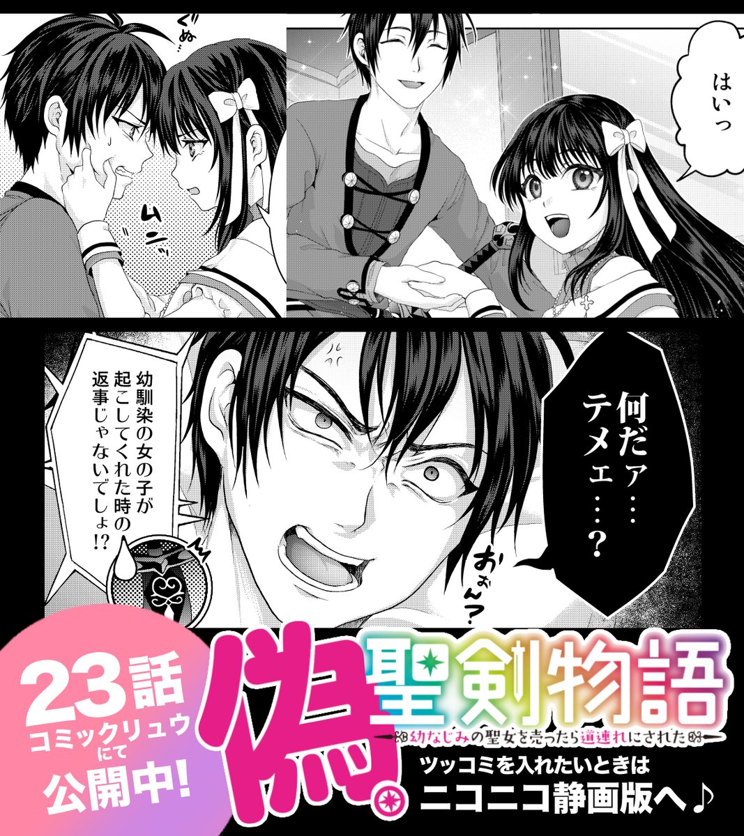 #作品を載せて自分の作品を知ってもらおう 🍀溝上良先生の「#偽・聖剣物語」のコミカライズ漫画を描かせていただいています(*'ω') 幼馴染の勇者(クズ)と聖女(クズ)のファンタジーコメディ漫画です❣️ ニコニコさんでならツッコミ入れたりして遊べます(👇'ω')👇 🌈偽・聖剣物語 sp.seiga.nicovideo.jp/comic/45925