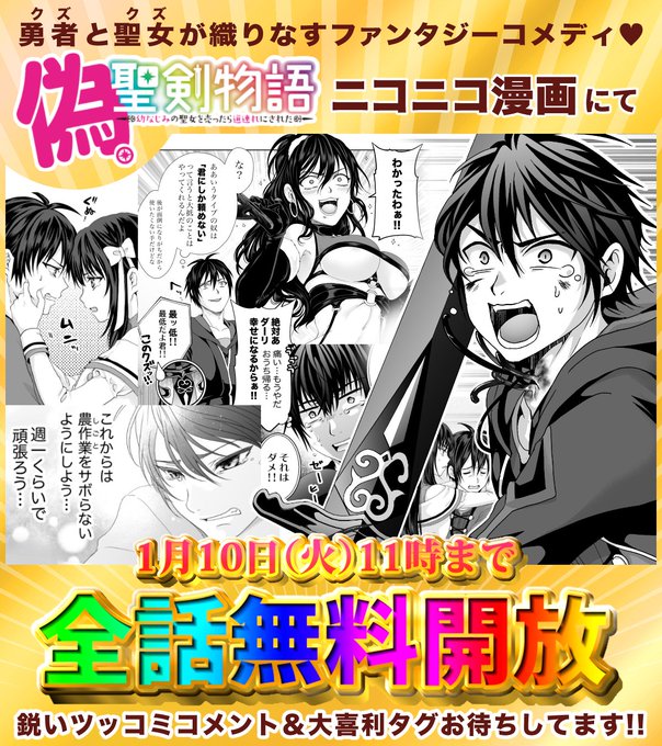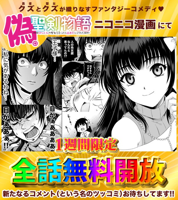 🎍✨あけおめございます✨🎍 「#偽・聖剣物語 」がニコニコ漫画で 🌟1週間限定🌟全話無料公開中‼ この機会に是非読んでみてね~✨ 新しいツッコミコメント&大喜利タグもお気軽にしちゃってOKよ❣ 皆で楽しんでいってね!💪('ω'💪) 🌈偽・聖剣物語(漫画はこちら)👇 seiga.nicovideo.jp/comic/45925