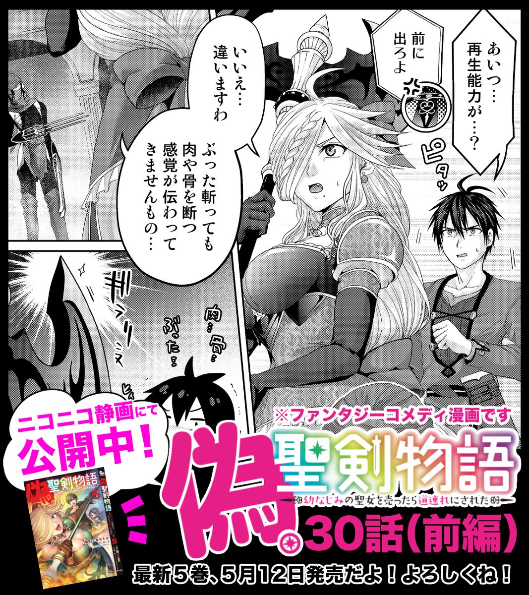 カンカンカン🍳 「#偽・聖剣物語 20話(後編)」ニコニコ静画で無料公開中よ~✨ コミカライズ版オリジナルキャラが登場よ~🌼 ニコニコ静画アプリ版で21話(前編)も先行公開中よ!よかったら見てみてね! 20話(後編)👇 seiga.nicovideo.jp/watch/mg642205 単行本3巻も発売中📚💪('ω'💪) amazon.co.jp/dp/4199507736