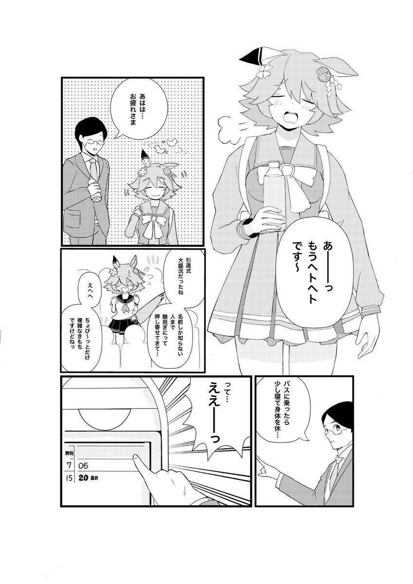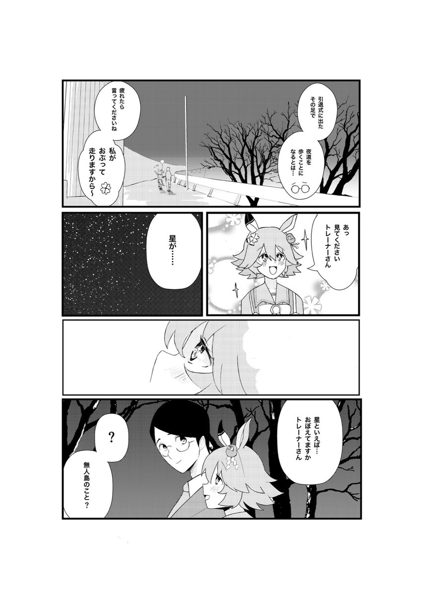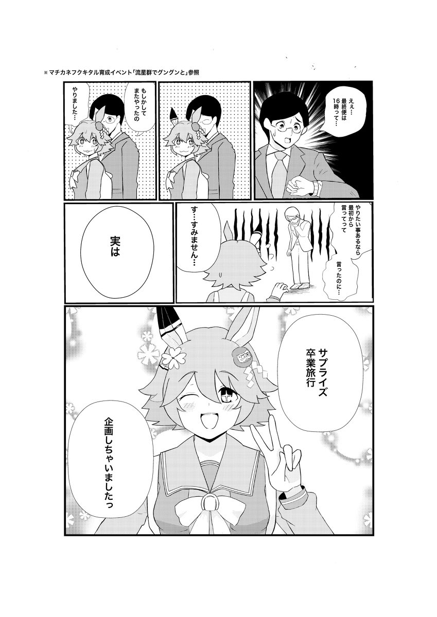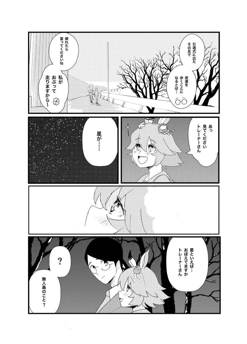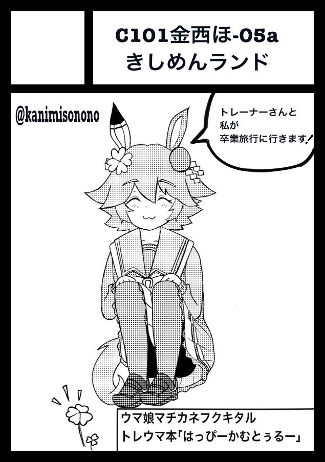 コミケも近くなったので改めて宣伝させて下さい! C101にてウマ娘本「はっぴーかむとぅるー」を頒布します〜🔮 引退式後にフクキタルとトレーナーが卒業旅行に行く漫画です、よろしくお願いします! #c101 #マチカネフクキタル
