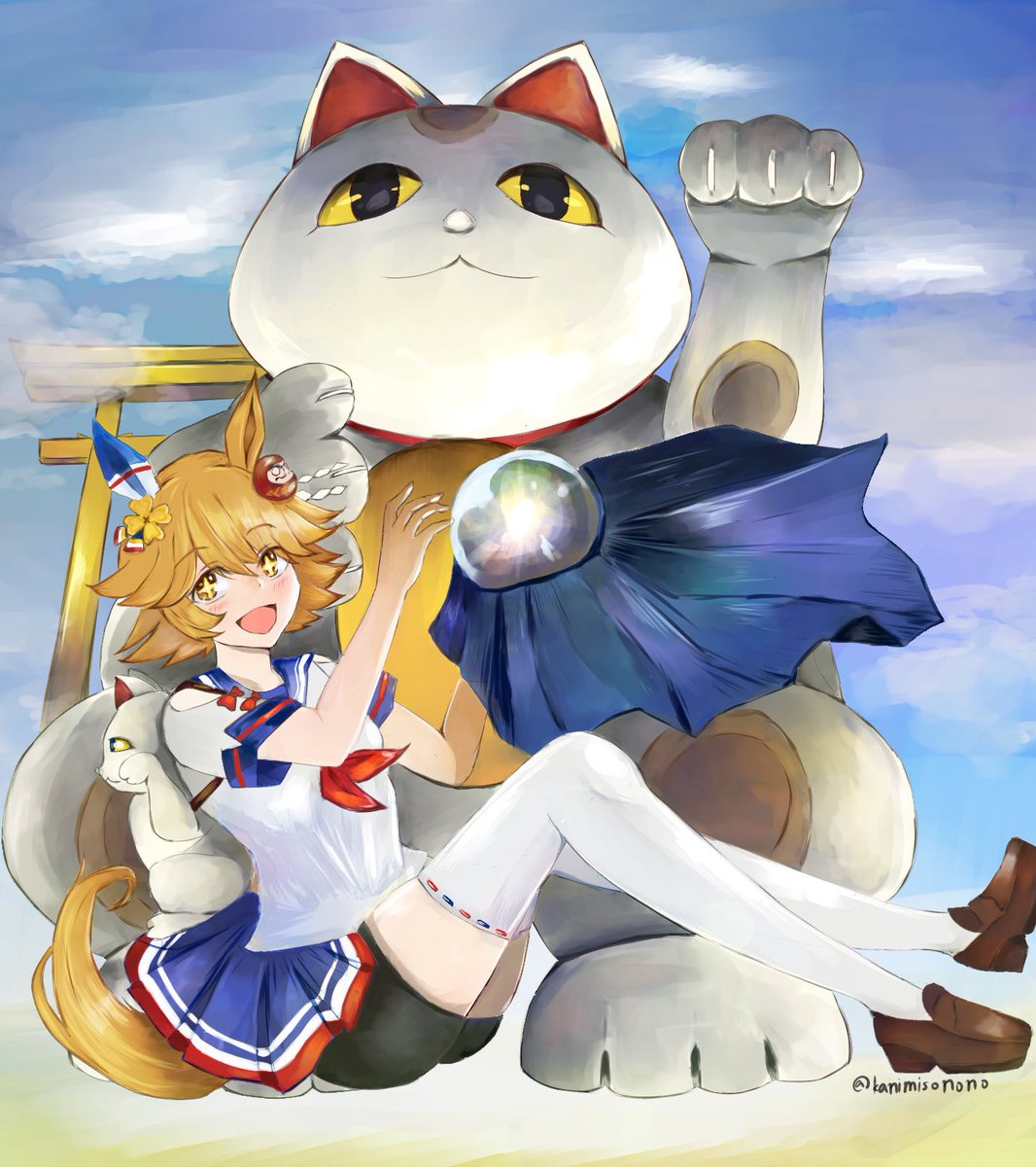 4/2(日)のプリステ29Rにて頒布予定のマチカネフクキタル合同誌企画、2P寄稿させていただきました! 春なのでお花見がテーマの漫画描きました〜!一枚絵は着彩間に合わずほぼ線画のみですが、こちらも気合い入れたのでぜひご覧になってください! 豪華メンバーなので手に取るのが楽しみです🙏 twitter.com/teri69tan/stat…