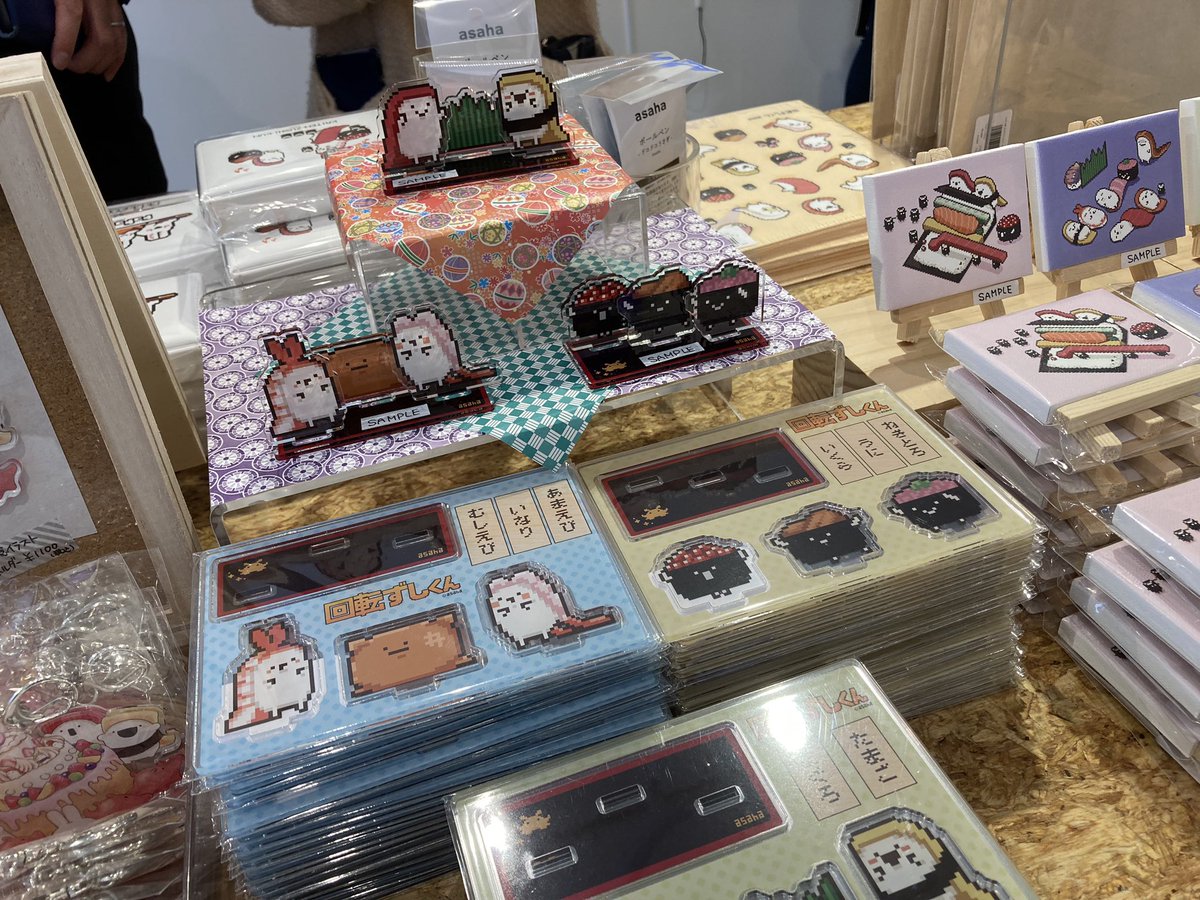 8 37 今日はasahaさん(@vpandav )の回転ずしくん展行ってきました! 可愛いものがたくさん💕 粘土で作ったまぐろとたまごも 気に入っていただけました( ^ω^ ) #回転ずしくん展 #粘土 #ドット絵 22/12/03 16:49