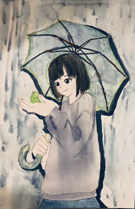 1 4 雨多いね #イラスト #オリジナルイラスト #水彩画 23/03/24 22:17