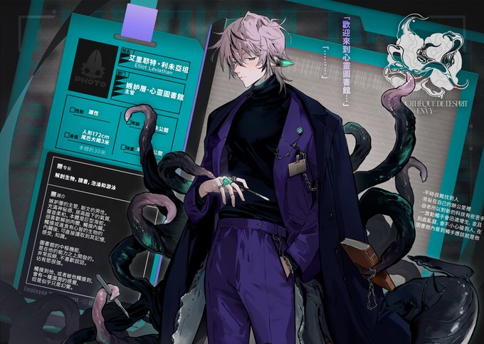 Character sheet of Demon Elliot and Demon Colton. I participate in this trpg/joint creative project "LIMBOS3" as one of the host members, and Elliot and Colt are NPCs! Elliot is the director of the "Library of the Mind" (La Bibliothèque de l'Esprit). The library contains… twitter.com/i/web/status/1…
