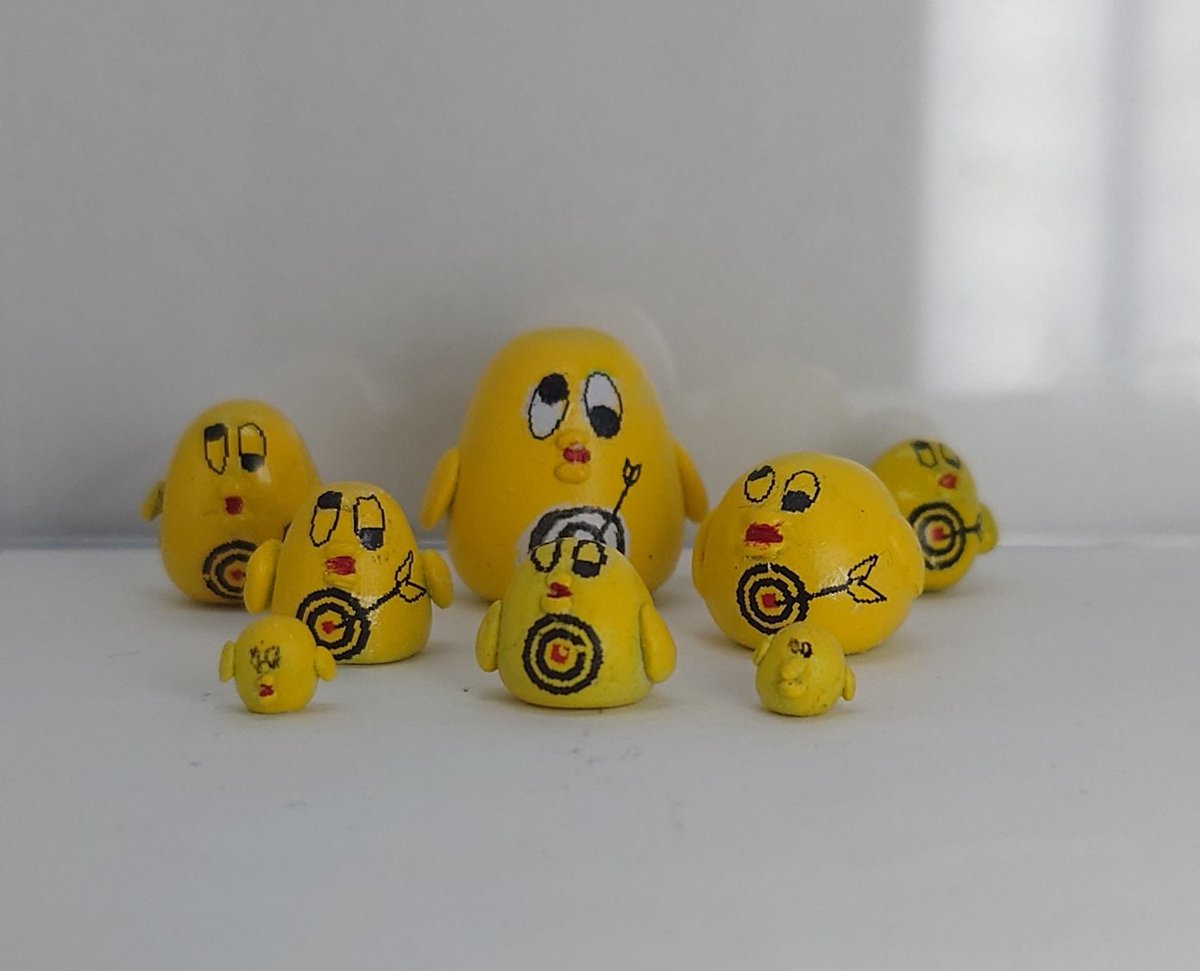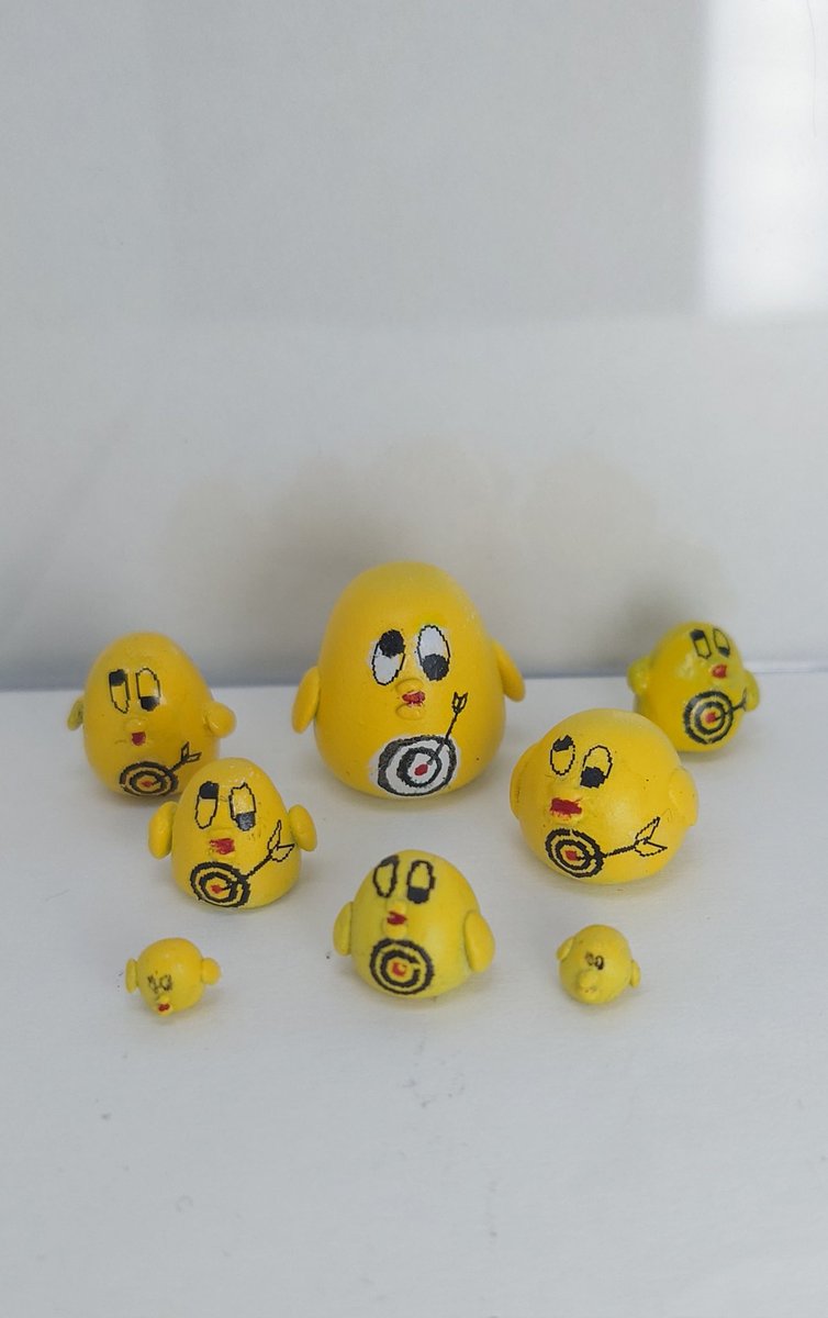 パテをこねくり回す時それはついでにポポピヨちゃんも生まれ落ちる時 大小だいぶ増えてきたポポ そして小さいやつは小さすぎて雑ピヨちゃんと化したポポ #ポポのアーチョ