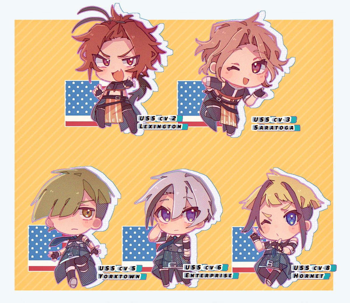 #繋がらなくていいから俺の擬人化を見てくれ 艦(1枚目)球団(2.3枚目)Dアトラク(4枚目) を、男の子に擬人化している 以上!