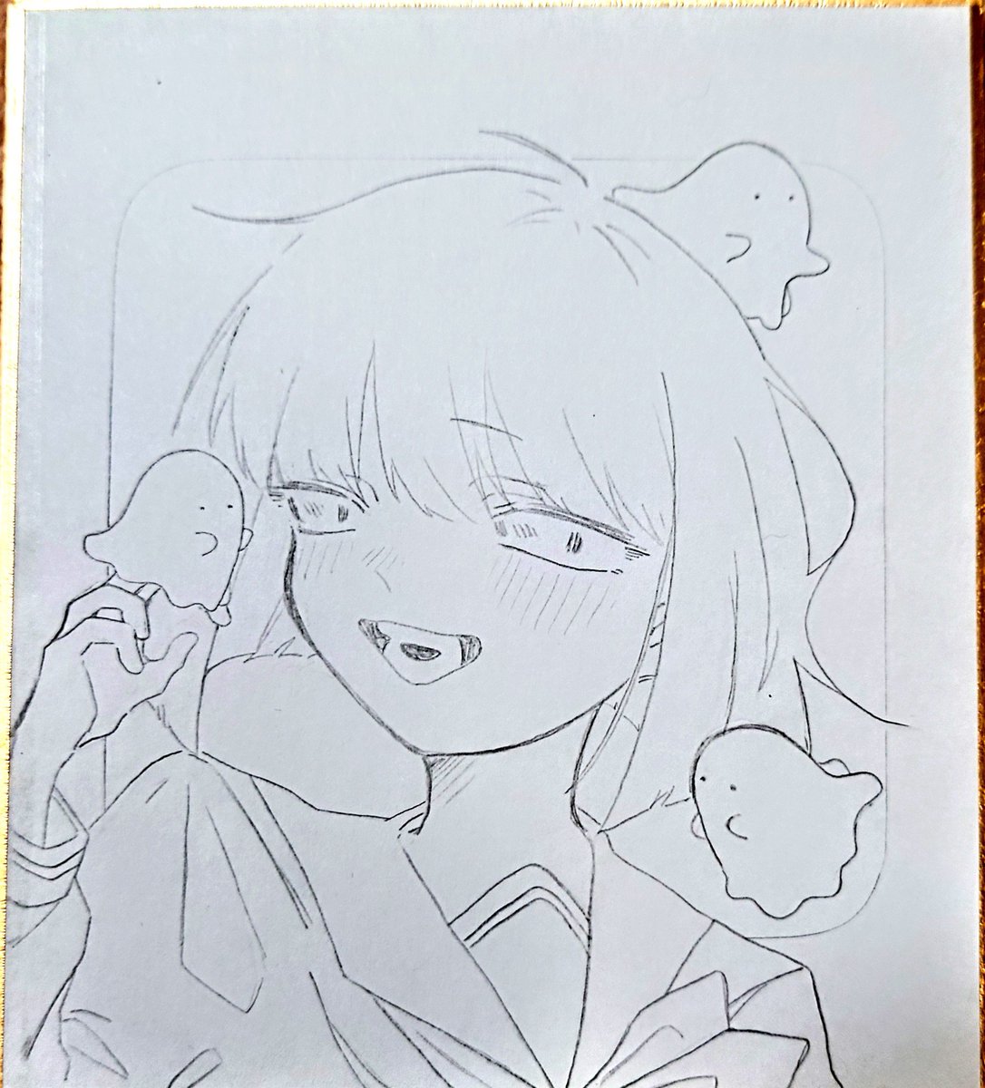 色紙に描いてる! ウミウシくんとおばけちゃん #イラスト