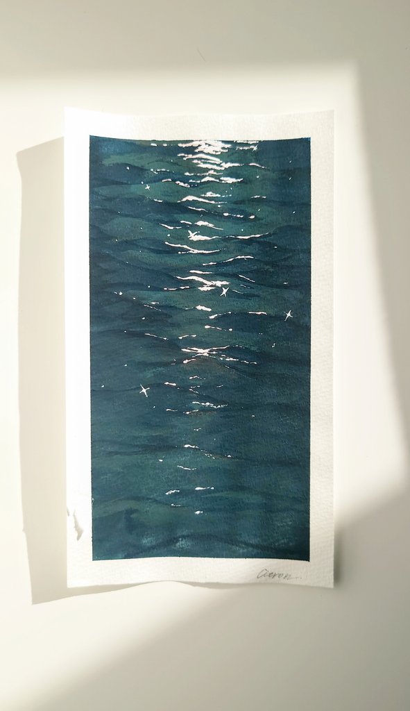 1月くらいに描いてたイラスト あげ忘れてました… 【夜明けの海】 #アクリル #イラスト