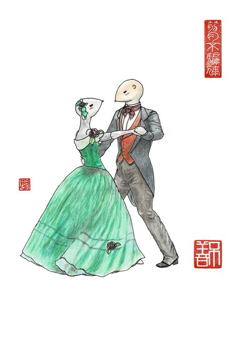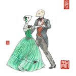 #色鉛筆画 #絵描きさんと繫がりたい 過去絵再掲。この時代このドレスを着る階級の女性はこの男性と踊る気になったのか、で軍服は諦め、このドレスの染料やデザインはこの時代この国のこの階級の女性が使えるものだったのか、男性のこれは夜の装いとして使えるものなのか、と大層悩みました。