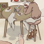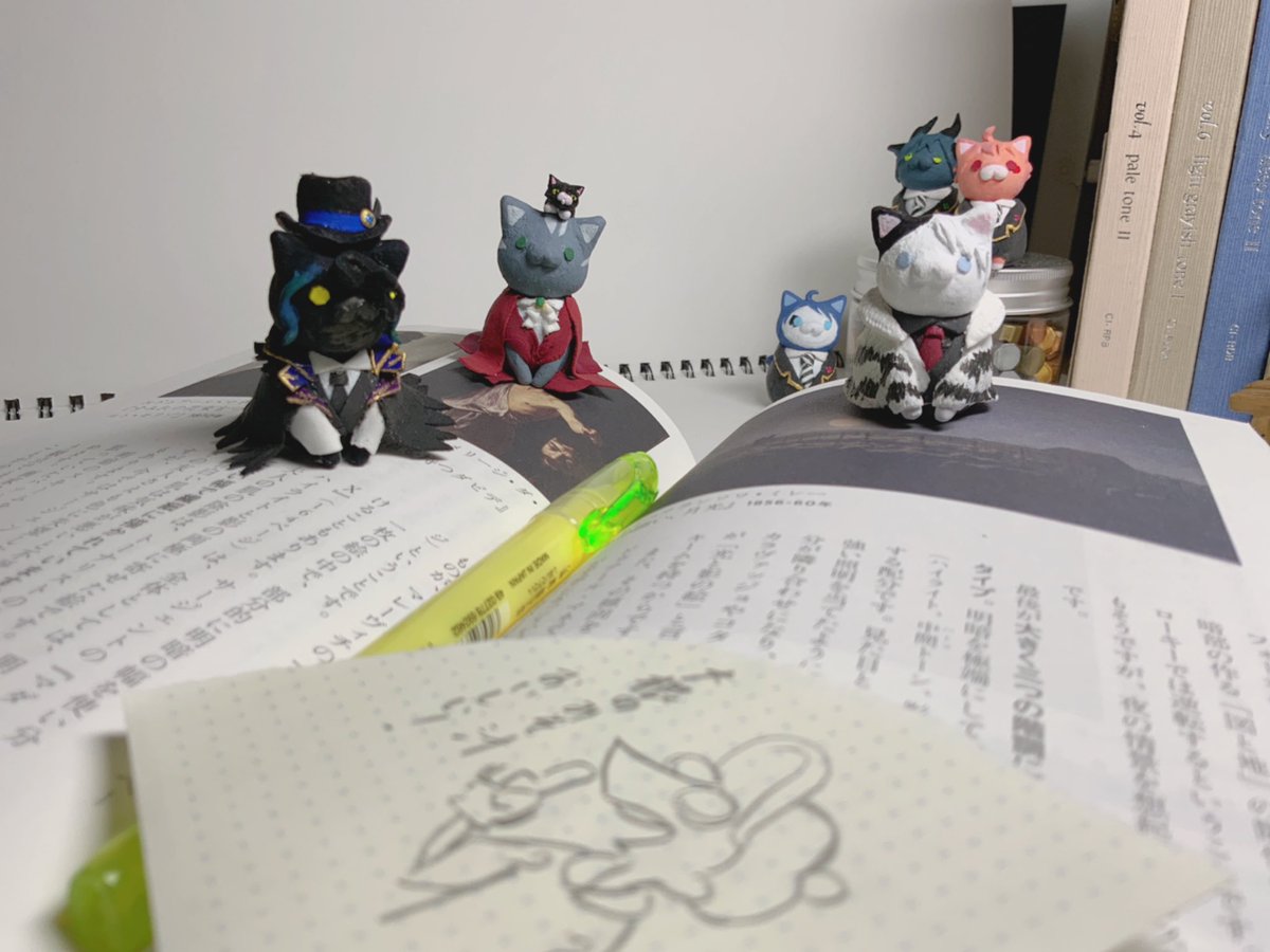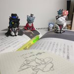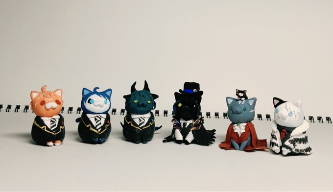 猫になった学園長たちが現れたッ! #ツイステ #ツイステファンアート 久々に粘土いじりました!(`・ω・´)و 左:全体 上:勉強中の落書きに対する無言の圧(教師陣) 下:落書きを邪魔しにきたクラスメイトと先輩(生徒)