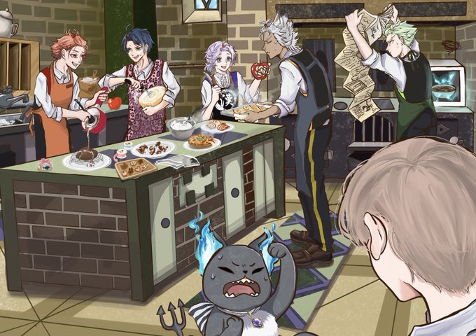 マブダチが日頃頑張ってる監督生のために、バレンタインのお菓子を作っているようです。 #グリム足止め失敗 #ジャックは数分前から足音で気付いてた #2秒後場が荒れる #NRC1年ズ #ツイステ #ツイステファンアート