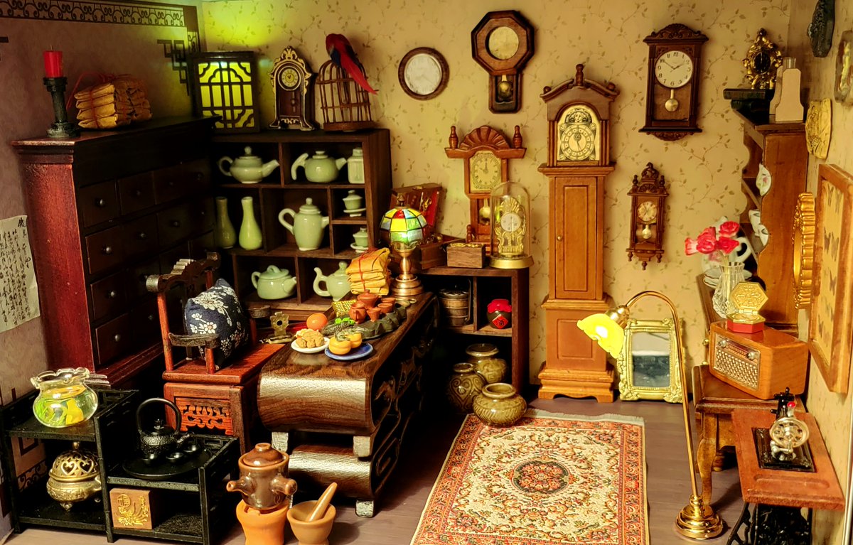 24 129 用防尘盒摆了个以茶和钟表为主的像是杂货铺一样的空间。大概是王老板开店,亚瑟可能会光顾的感觉☺️☺️ 22/04/25 05:18