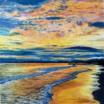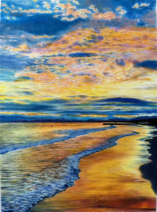 海っぽいやつ完成! A4ケント紙 色鉛筆(ポリクロモス・ホルベイン) ボールペン・サインペン・ポスカ #夕暮れ #夕焼け #黄昏 #色鉛筆 #illustration #illustrationart #art #love