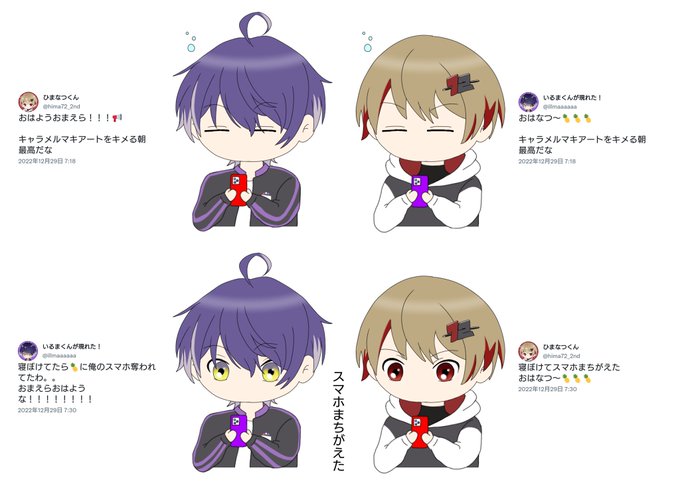 妹が描いたシクフォニ 仕事終わりにLINE見たらサプライズで届いてました #シクスフォト #72あーと #こさめの目 #いるまにあふぁみりー #らんらんかんしちゅう #すちくんおきて #みことの民