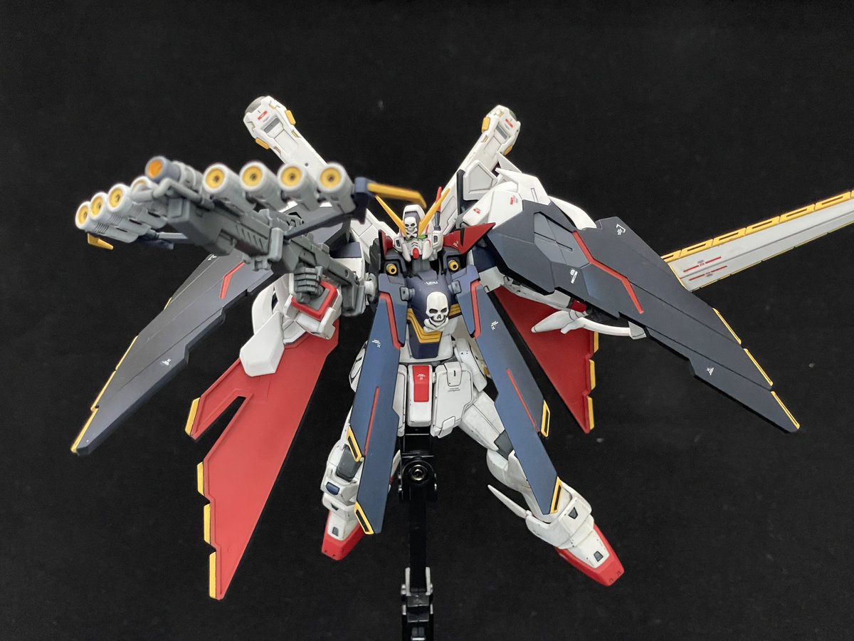 という訳で、友人からの制作依頼のクロスボーンガンダムX1フルクロス、完成しました。 改造はトゲの先鋭化くらいの半分ほど整形色仕上げの半手抜き仕様。 フルクロスはプリズムブルーブラックのつや消し、本体には汚しを入れました。 #ガンプラ ↓リプに画像続きます