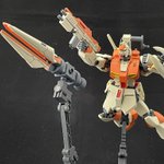 速射型ビームライフル 銃身を短縮しコンデンサーと銃口を追加。単発威力よりも命中を重視。 シールドは切り詰めで重量軽減。機能は特に変更無しです。 サーベルはビームエフェクトが付属してないので通常のサーベルを移植。 ↓続きます