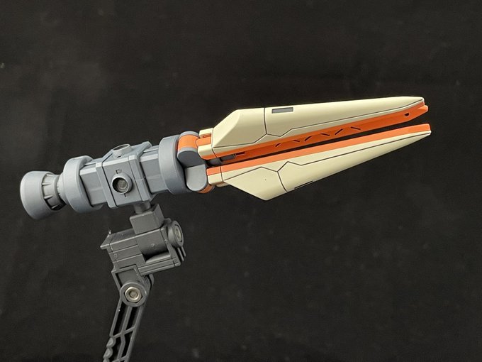 単装式フィン・ビット 端末を一機にすることで操作性を向上。機体固定時には強力なビームキャノンとしても機能する。 ビームバリアを展開可能。 バリアエフェクトはフィンの穴に差し込んで固定します ↓リプに続きます
