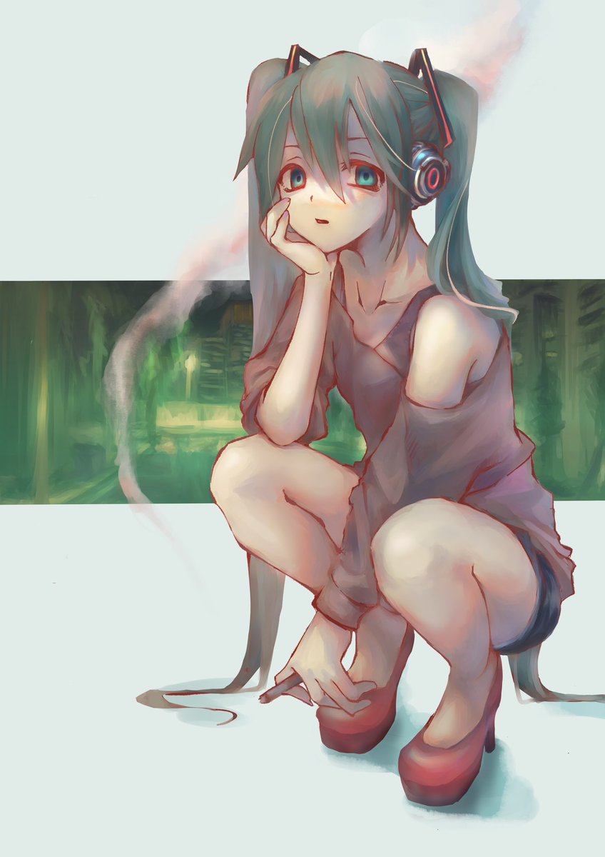 #イラスト 再掲 初音ミク 夏休みマジ時間ない😂 こうやって見ると今と塗りが変わってる様な…