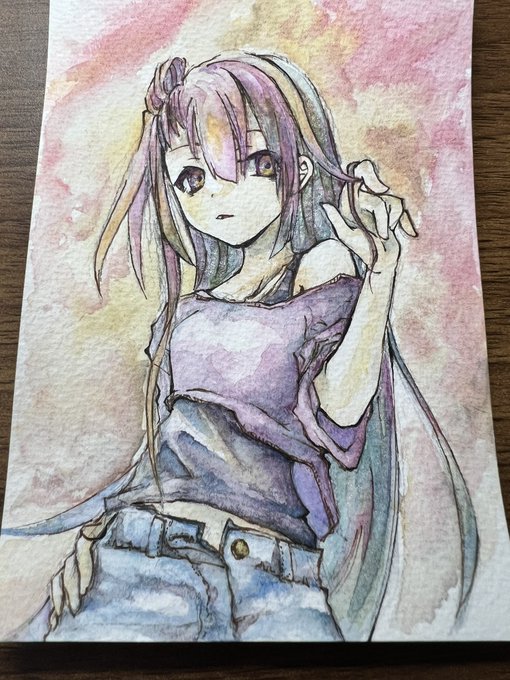 #イラスト ゆゆん ぐんちゃん 色遊び過ぎてぐんちゃんに見えないかな?😅 久々にアナログ!水彩!