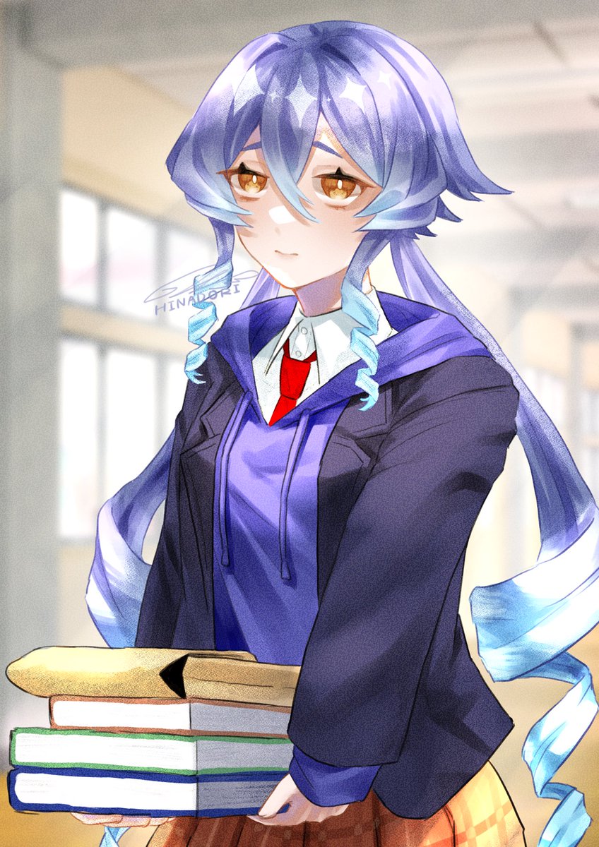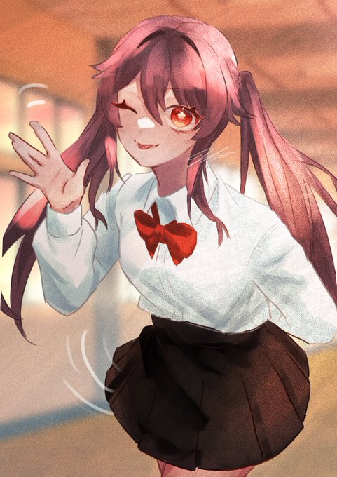#原神 #原神イラスト ※学パロ 胡桃先輩は廊下ですれ違いざまに背中を叩いてくる。ちょっと痛いけどあの顔されたら怒れないよ...。