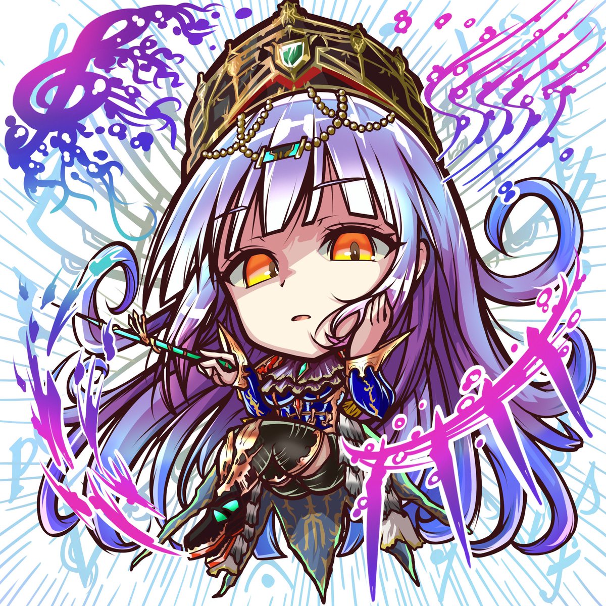 この前の生放送で紹介された ダセットBを描いてみました🥰 まだラフだったので細かなデザインまでは正確に描けませんでしたが頑張って描いたので見て❗️ 背景は楽譜風にしてみたです♫ #コトダマン #コトダマンイラスト