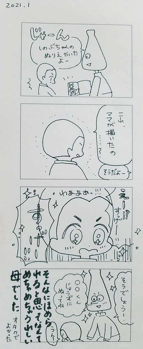 2 14 子供に鬼滅のぬりえつくってあげたらめっちゃ喜んでくれて、それがすごく嬉しかった話。 #育児漫画 #育児絵日記 21/02/08 19:10