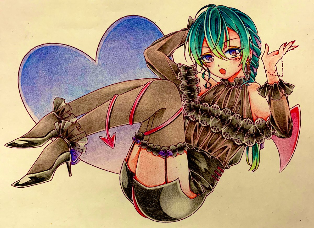 初描きスイデビ緑仙🐼圧倒的小悪魔きゃわ。。。 #緑仙はやく見ろ