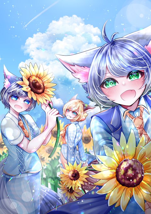 3969!! | かのトマト #pixiv pixiv.net/artworks/10164… 6月の3969の絵にシークレットゲストのリミックスちゃんを追加して完成させました💙💗 良かったらクリックして見てね! #SB69