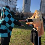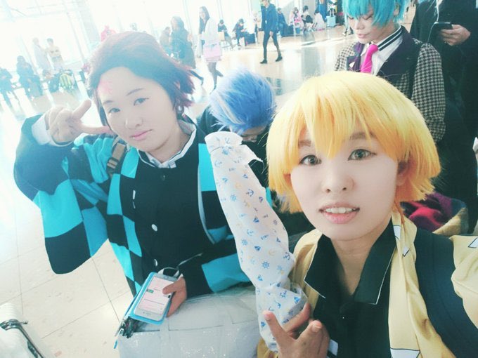 何をやっているんだコミケで!? 炭治郎と善逸のおもしろポーズ 12/28 C97 1日目 我妻善逸→黒咲路兎(@rototon04) #C97コスプレ