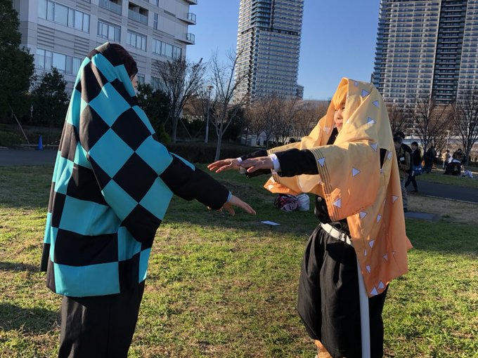 1 3 何をやっているんだコミケで!? 炭治郎と善逸のおもしろポーズ 12/28 C97 1日目 我妻善逸→黒咲路兎(@rototon04) #C97コスプレ 20/01/03 00:19