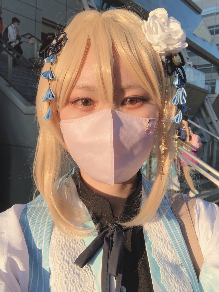 2 20 cosplay 原神/蛍(同人衣装 大正ロマン風) 📸→ イケチさん(@ikechi_cycle ) 日没の時間帯に撮っていただいたお写真なんですが、色合いが良すぎるので見てほしい…✌︎('ω')✌︎ #となコス 23/01/11 18:54