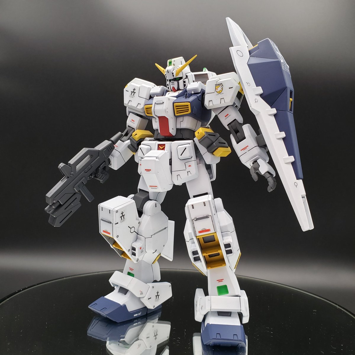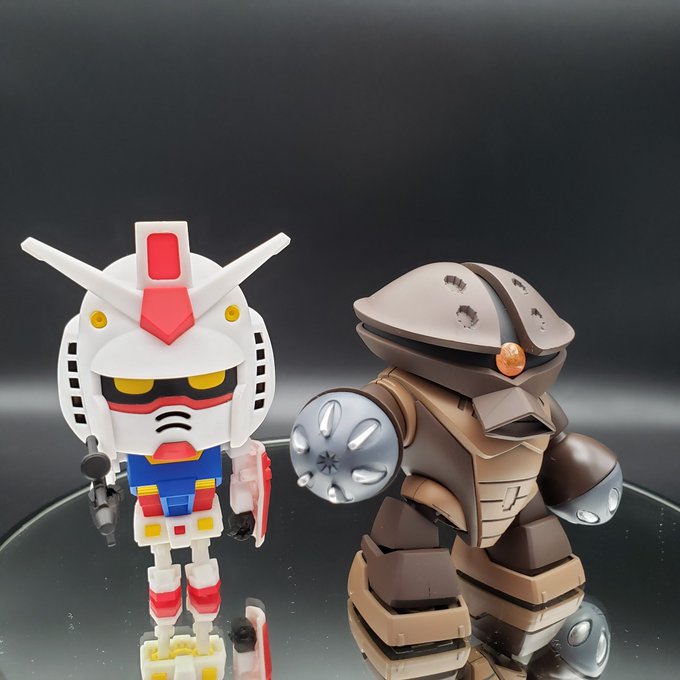 ガンプラくん(ランナーVer) G-3カラーで完成!ヽ(´ᗜ`)ノ 何も考えないでやったからクリアランスなくて塗装ガリガリw 付録で作ったのとパシャリ📸 #ガンプラ #早作りGW2023