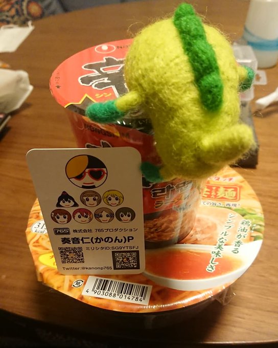 「無事に断崖絶壁を登りきったチュパカブラ」 …のラーメンストッパーを作りました #羊毛フェルト #ミリシタ #imas_ml #imas_ml_7th
