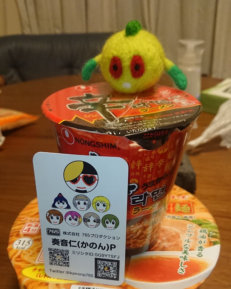 63 145 「無事に断崖絶壁を登りきったチュパカブラ」 …のラーメンストッパーを作りました #羊毛フェルト #ミリシタ #imas_ml #imas_ml_7th 20/05/23 08:05