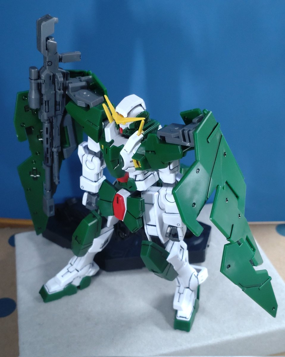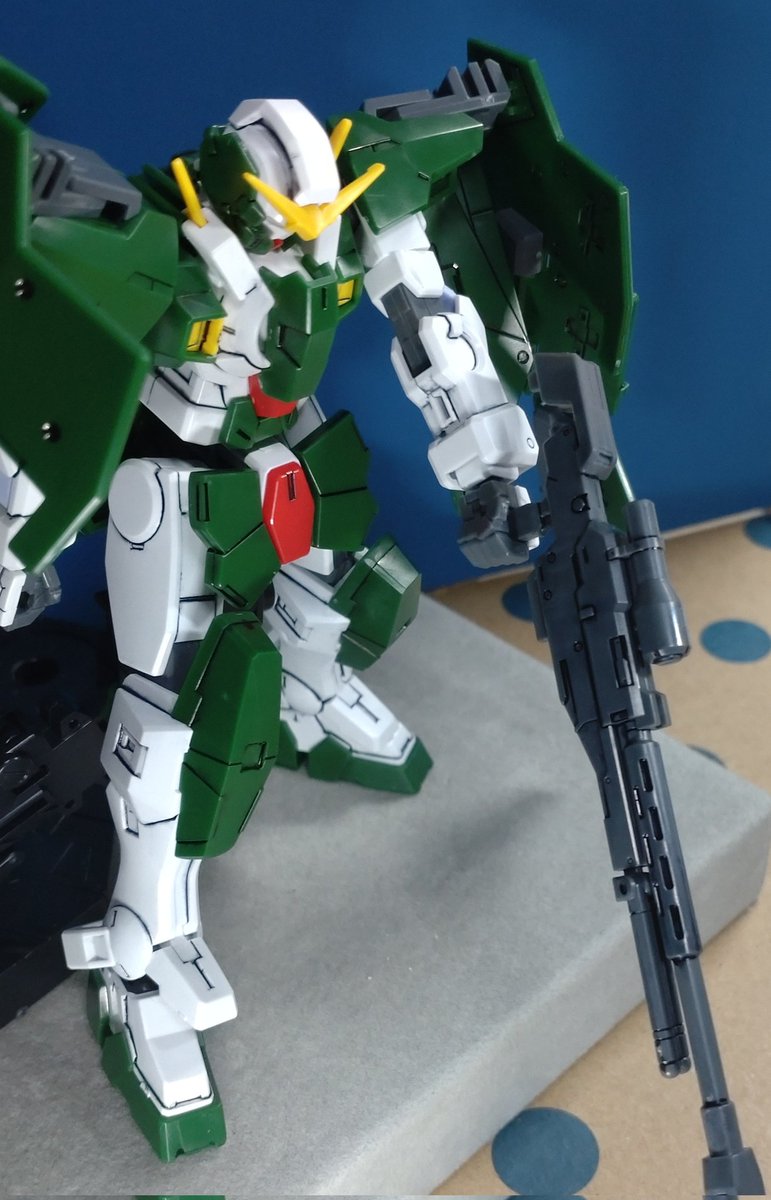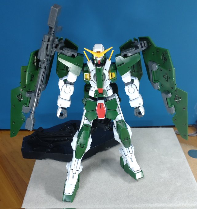 #ガンプラの画像貼るとRTされると聞いて 二体目完成 ダブルオーのデュナメスです 一体目にヴァーチェ進めてたのに何故かこっちのほうが早くできたという謎 右腕折れなければもっと早かった ちなみに右腕くっついたけど、完璧には治らずプラプラで位置固定できなくなりました。そこだけ残念。
